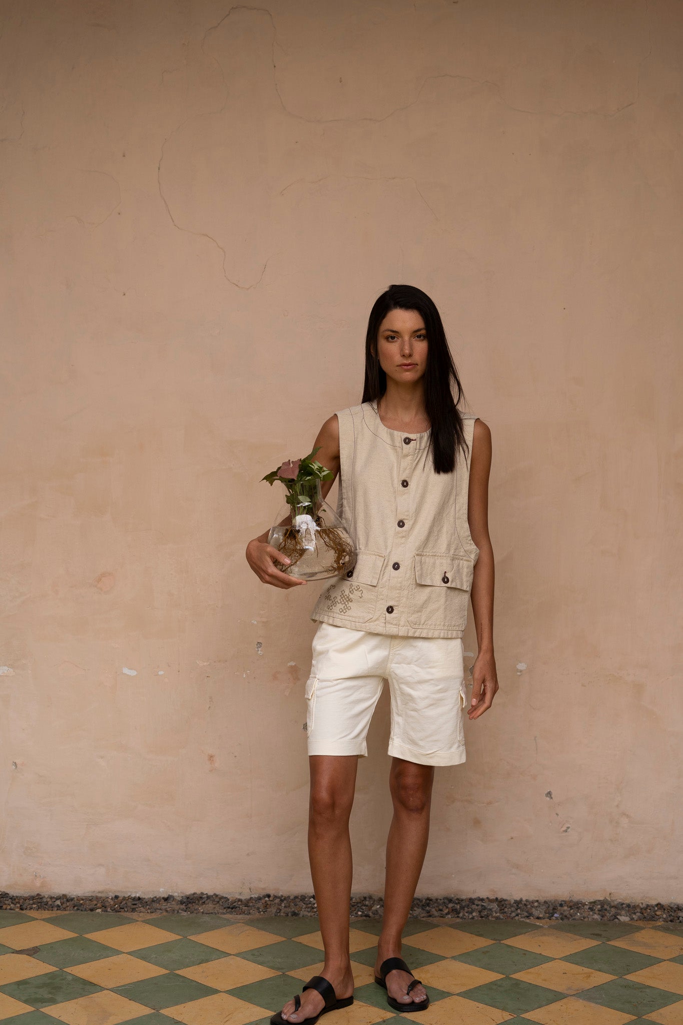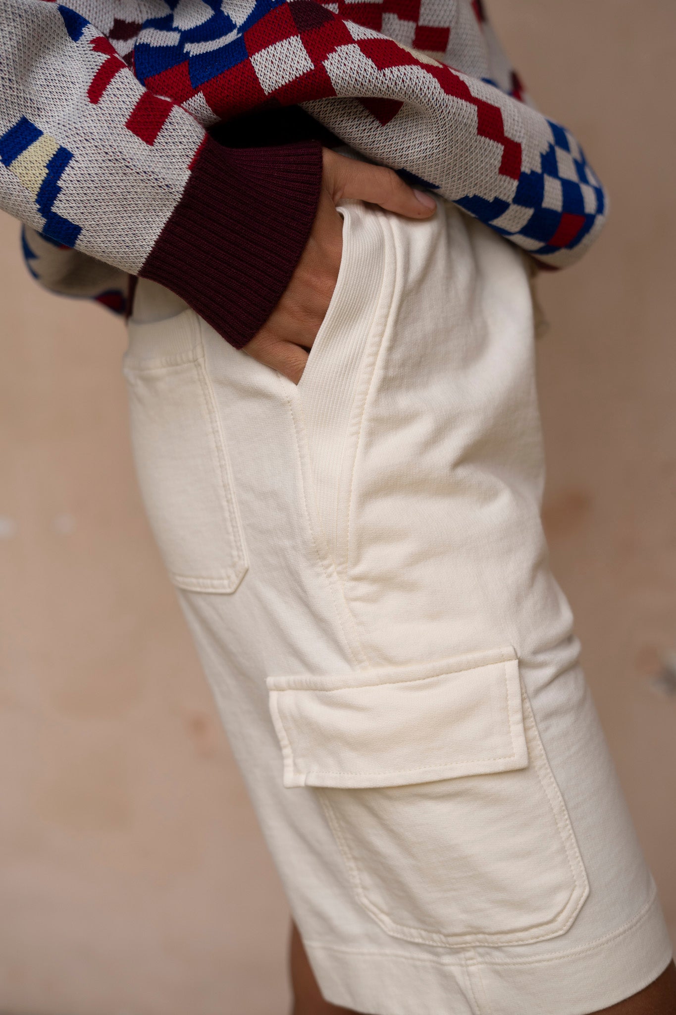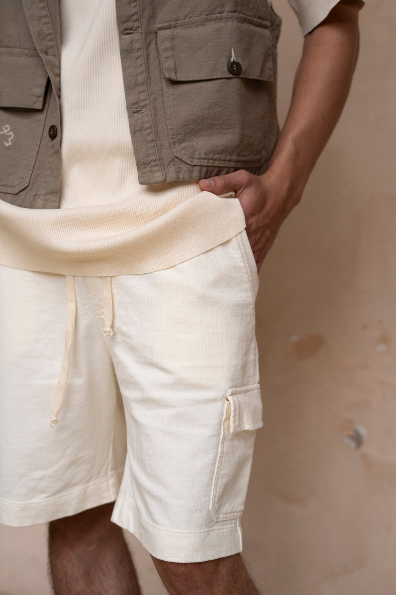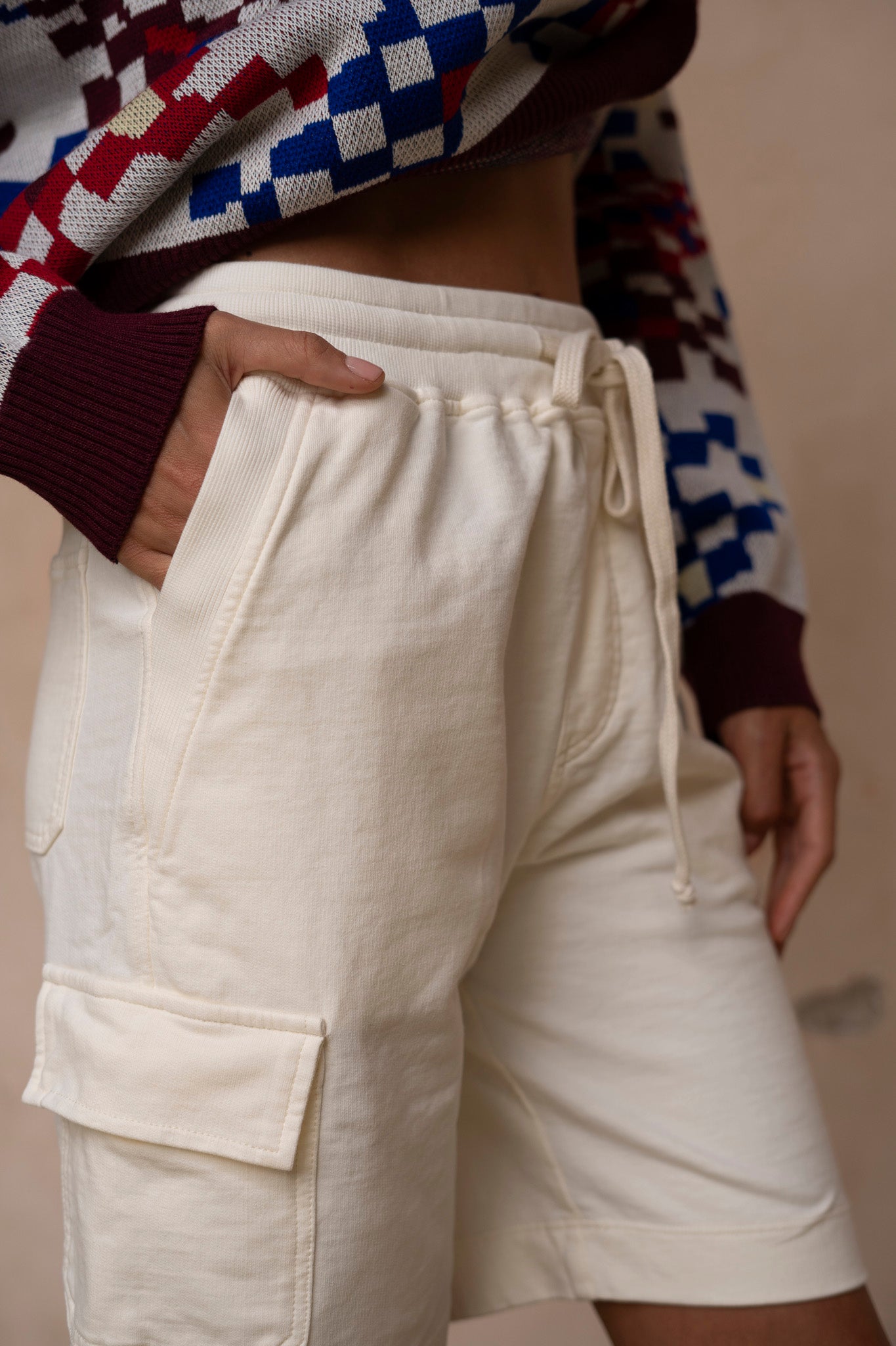 Esta bermuda es una prenda all-gender de textura fresca y sin perchar. Silueta de cintura alta y largo medio.
