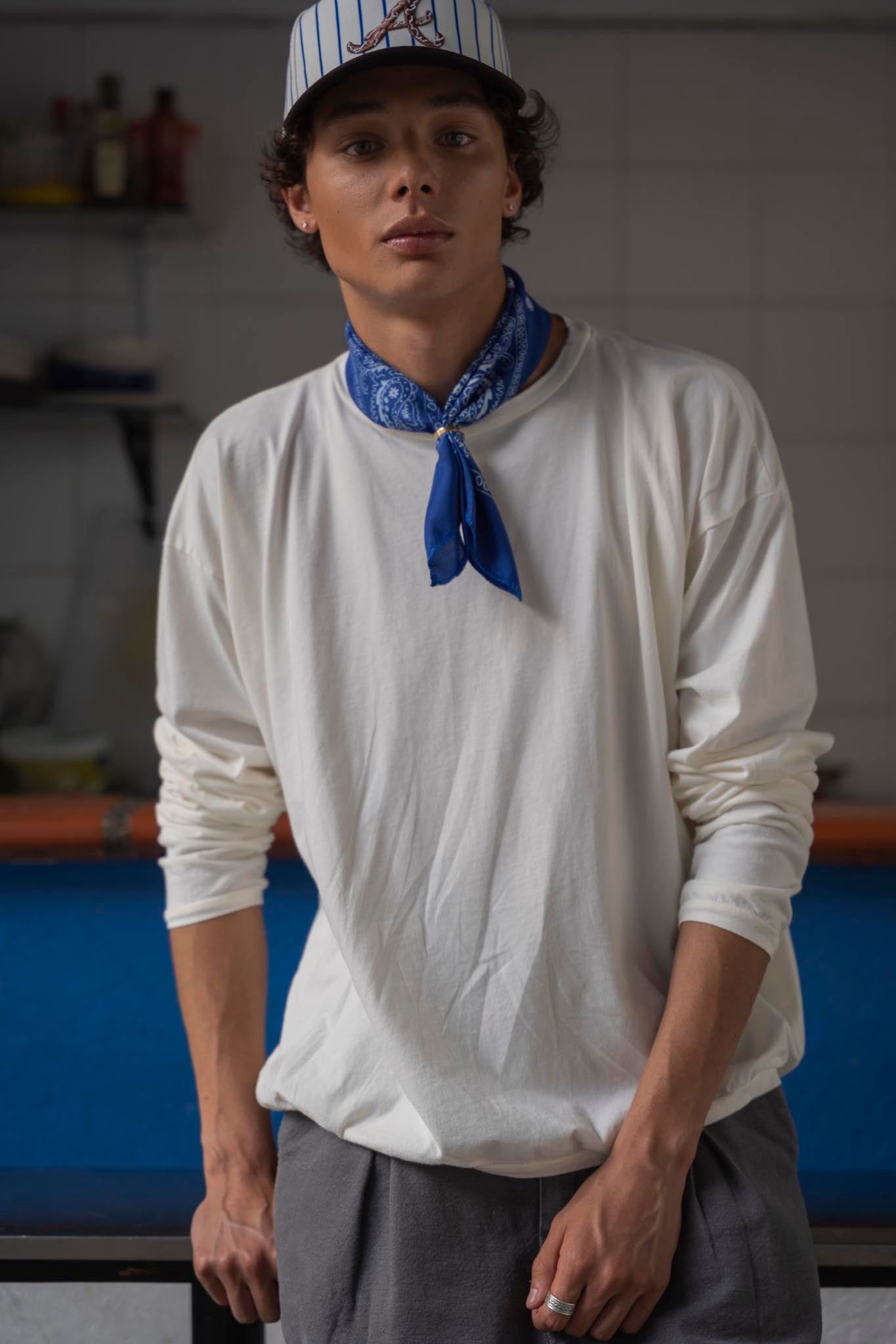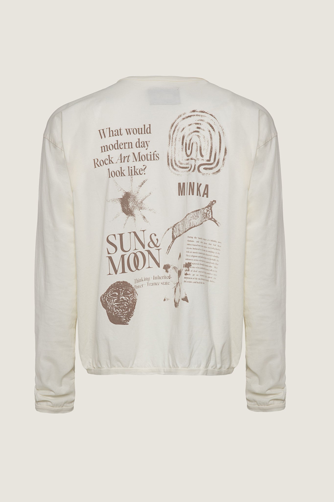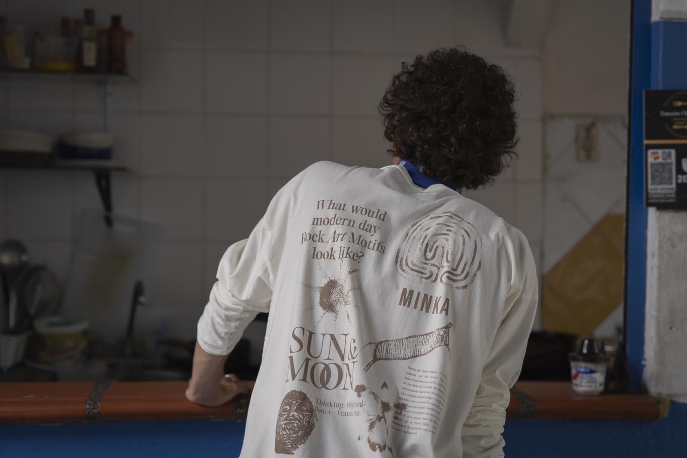 Esta prenda de manga larga y fit oversized con un fajón en la parte baja que crea una silueta más relajada y está hecha en 100% Algodón BCI (Better Cotton Initiative) de origen colombiano, con un gramaje medio que la hace aún más fresca. Diseñamos un estampado alusivo a la colección y a las culturas andinas que cubre su espalda en un tono taupe. Esta prenda está hecha en su totalidad en Antioquia, Colombia.
