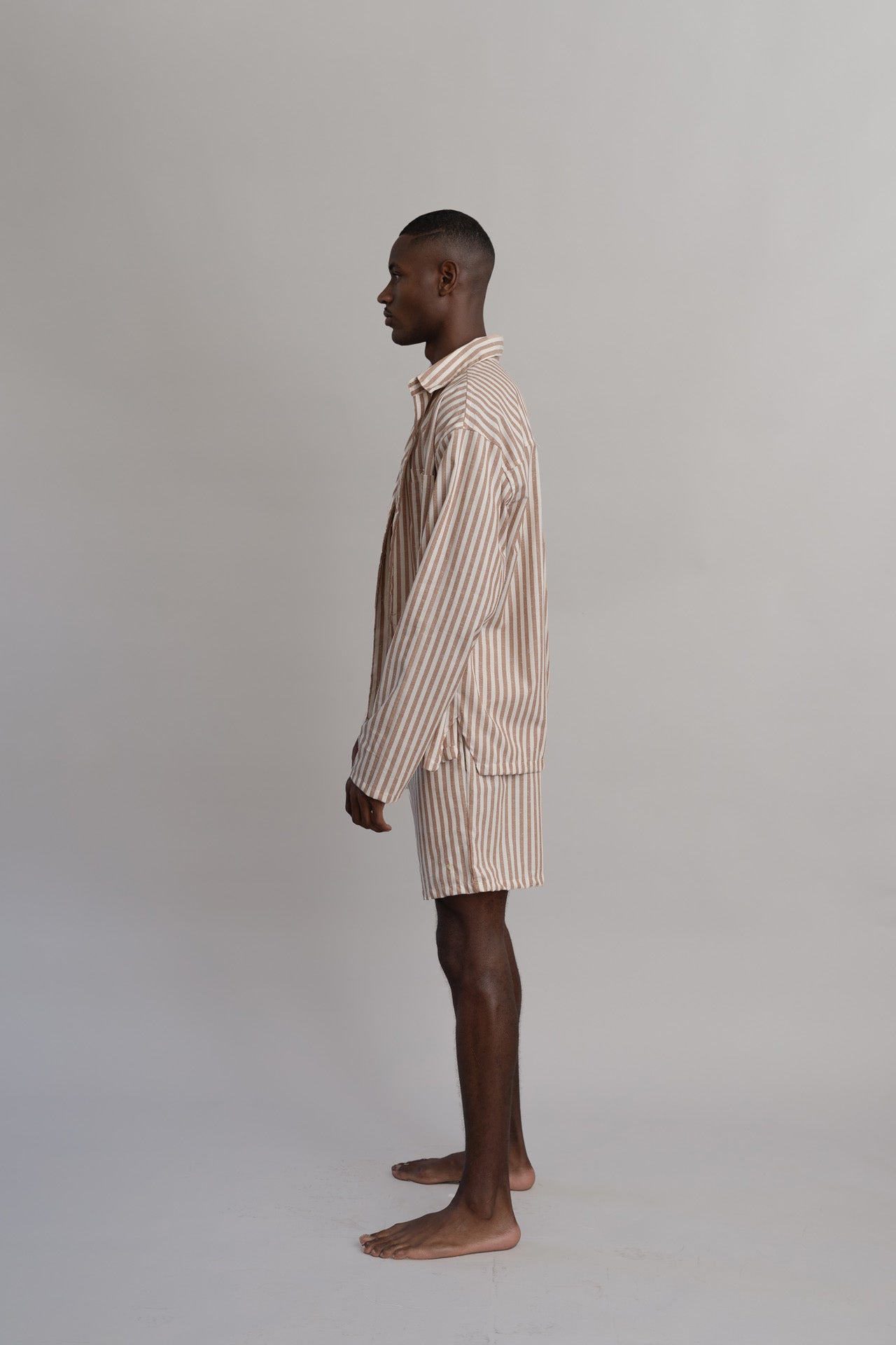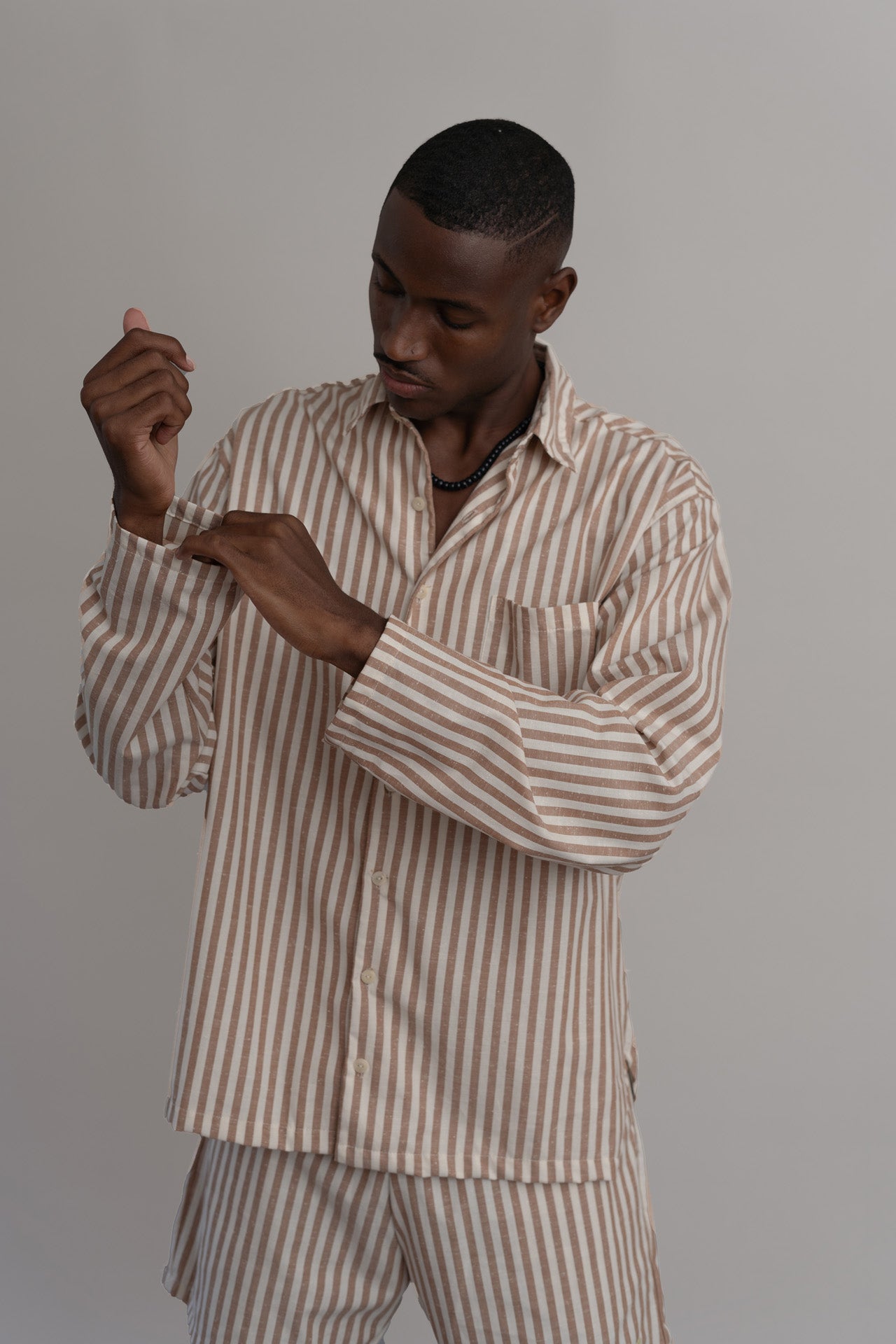 Esta camisa de rayas gruesas está diseñada para los momentos de confort durante el día. Confeccionada por manos colombianas, en tela popelina de algodón español 100% orgánico, de toque fresco y suave. Esta es la prenda perfecta para elevar cualquier look casual ya que evoca perfectamente la simplicidad y elegancia de vivir lento.