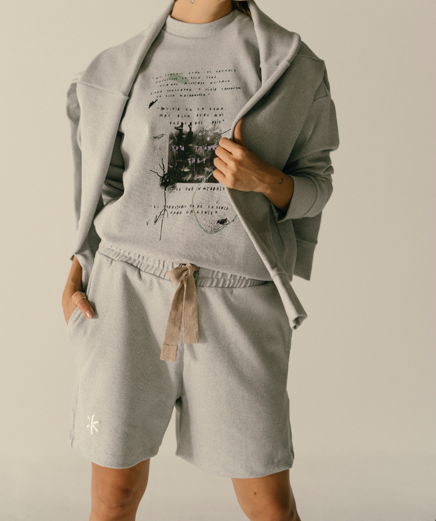 ”El pescador” es una prenda inferior corta y de estilo retro, hecho en tejido RIB RECOVER a base de algodón 100% orgánico y reciclado.