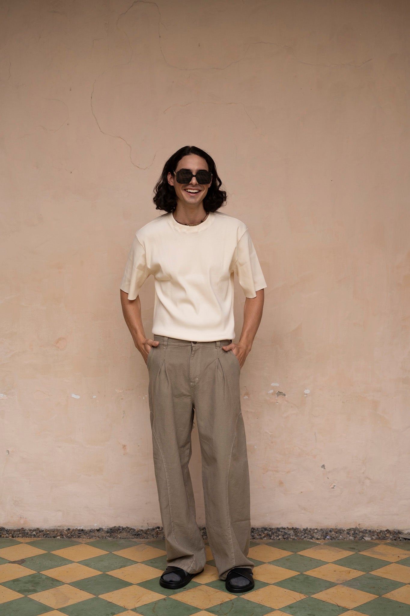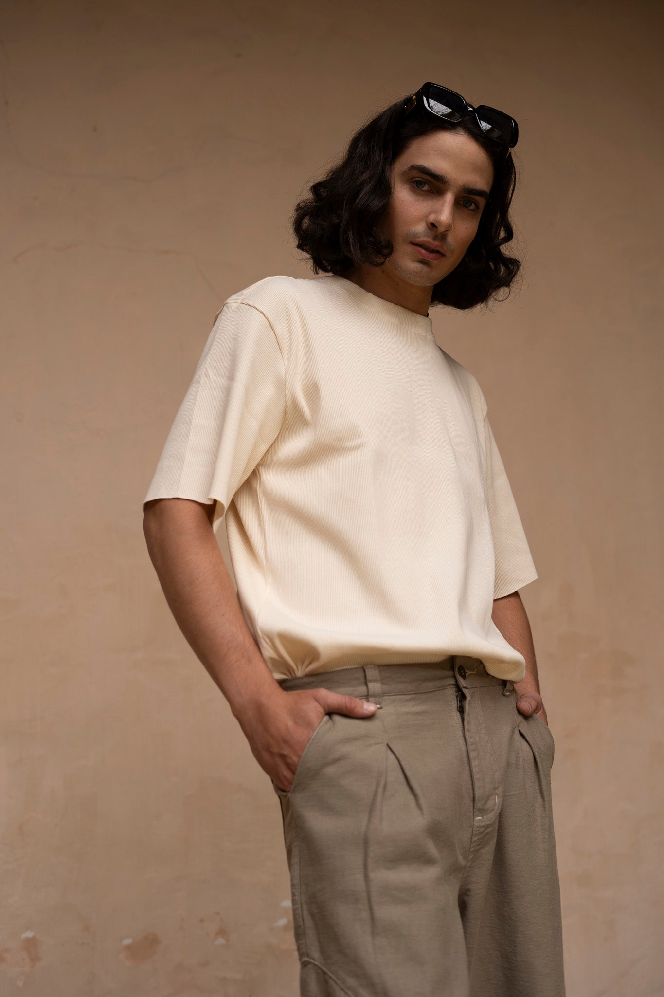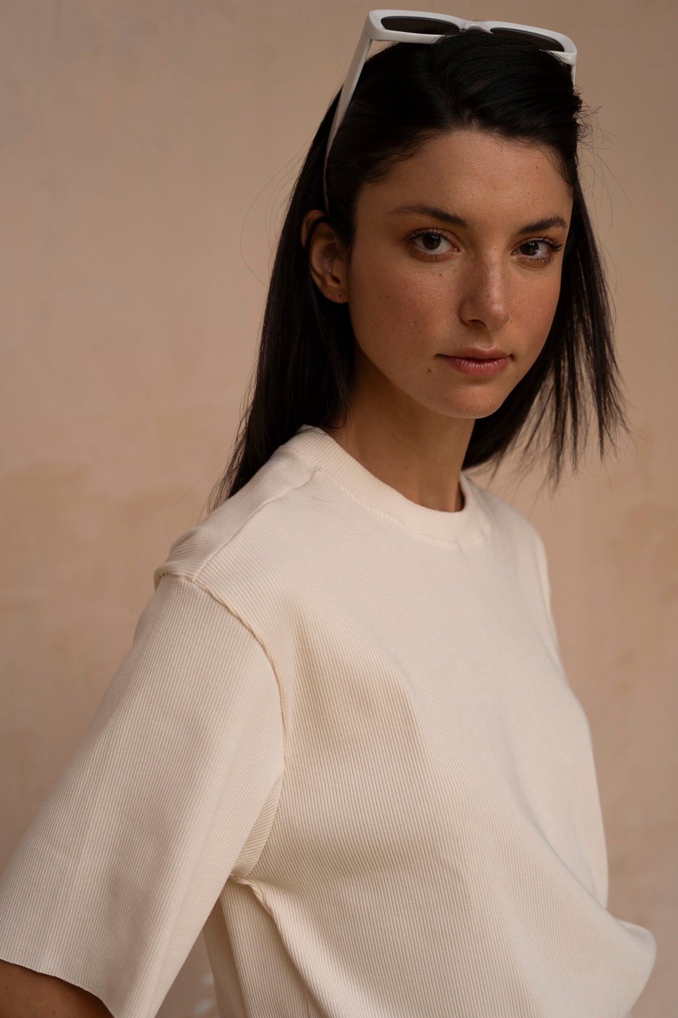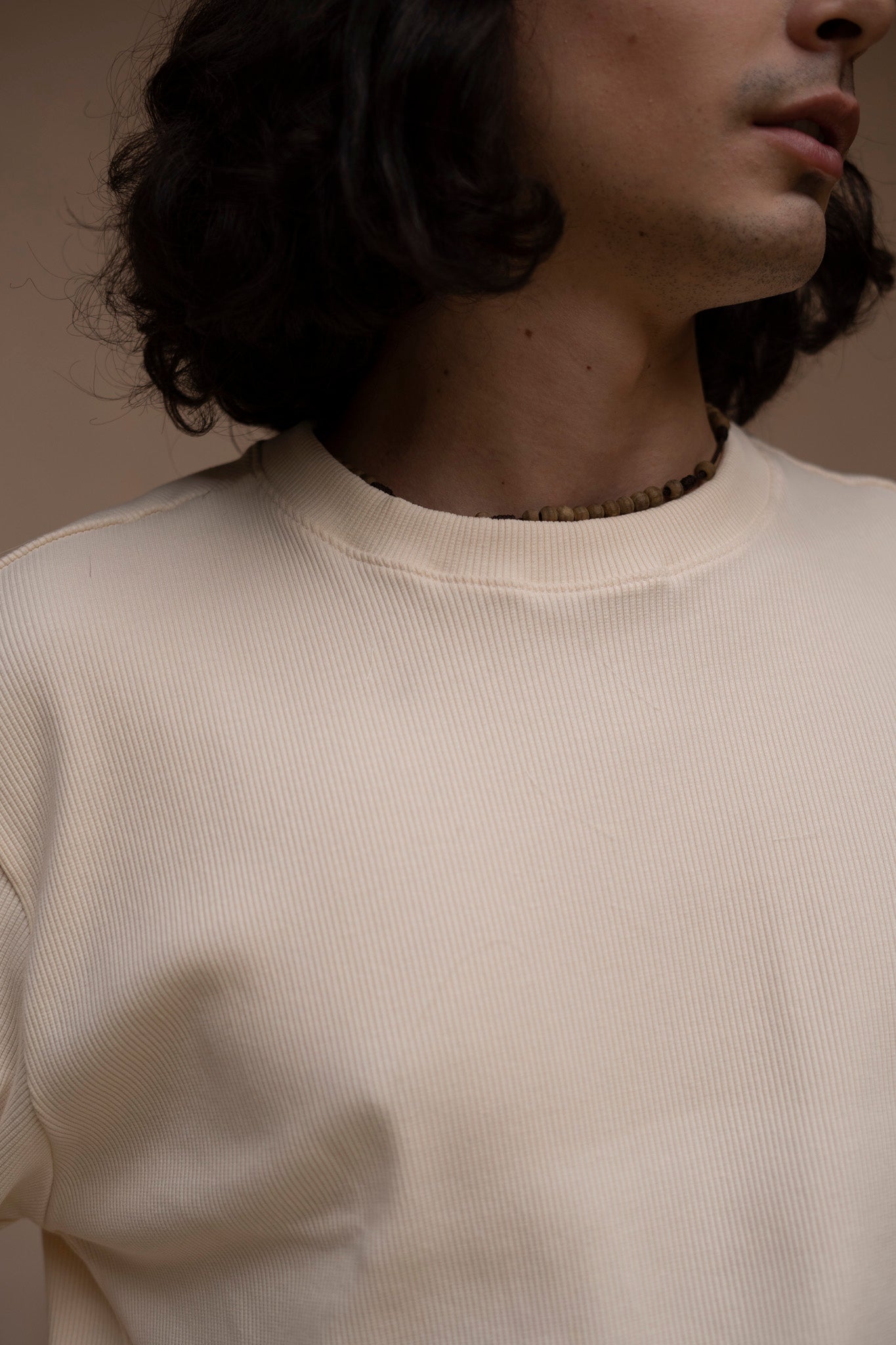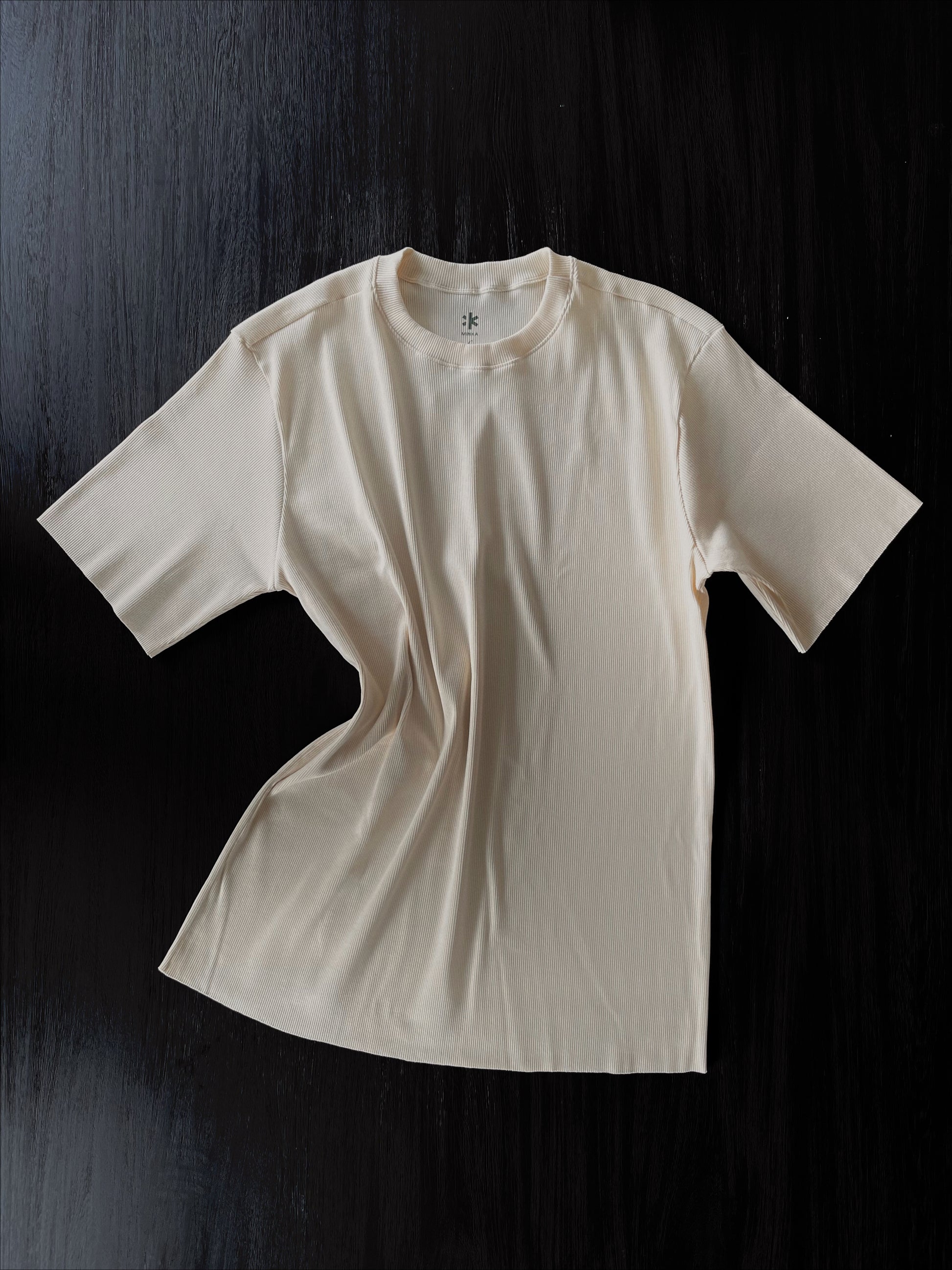 Camiseta de manga corta, con terminaciones al corte y de fit oversized.