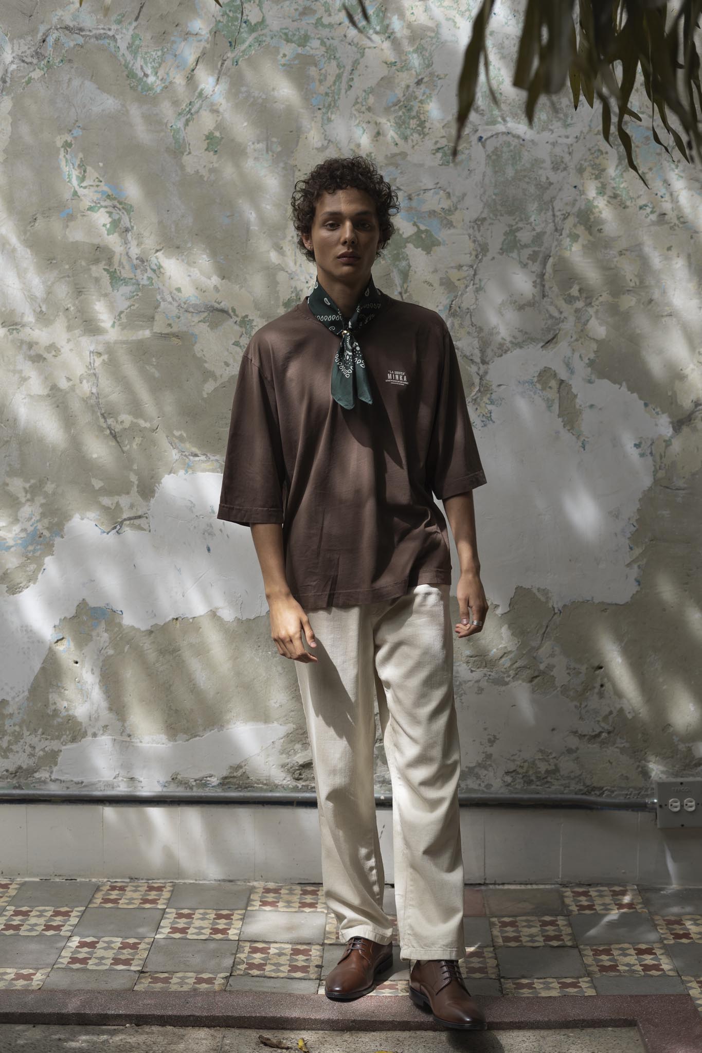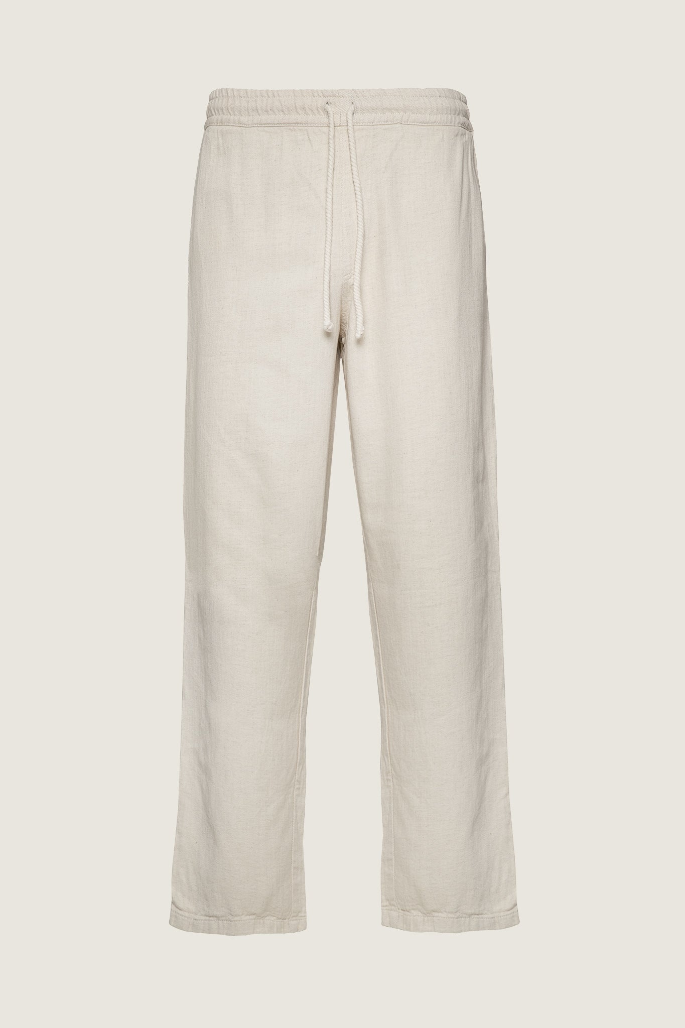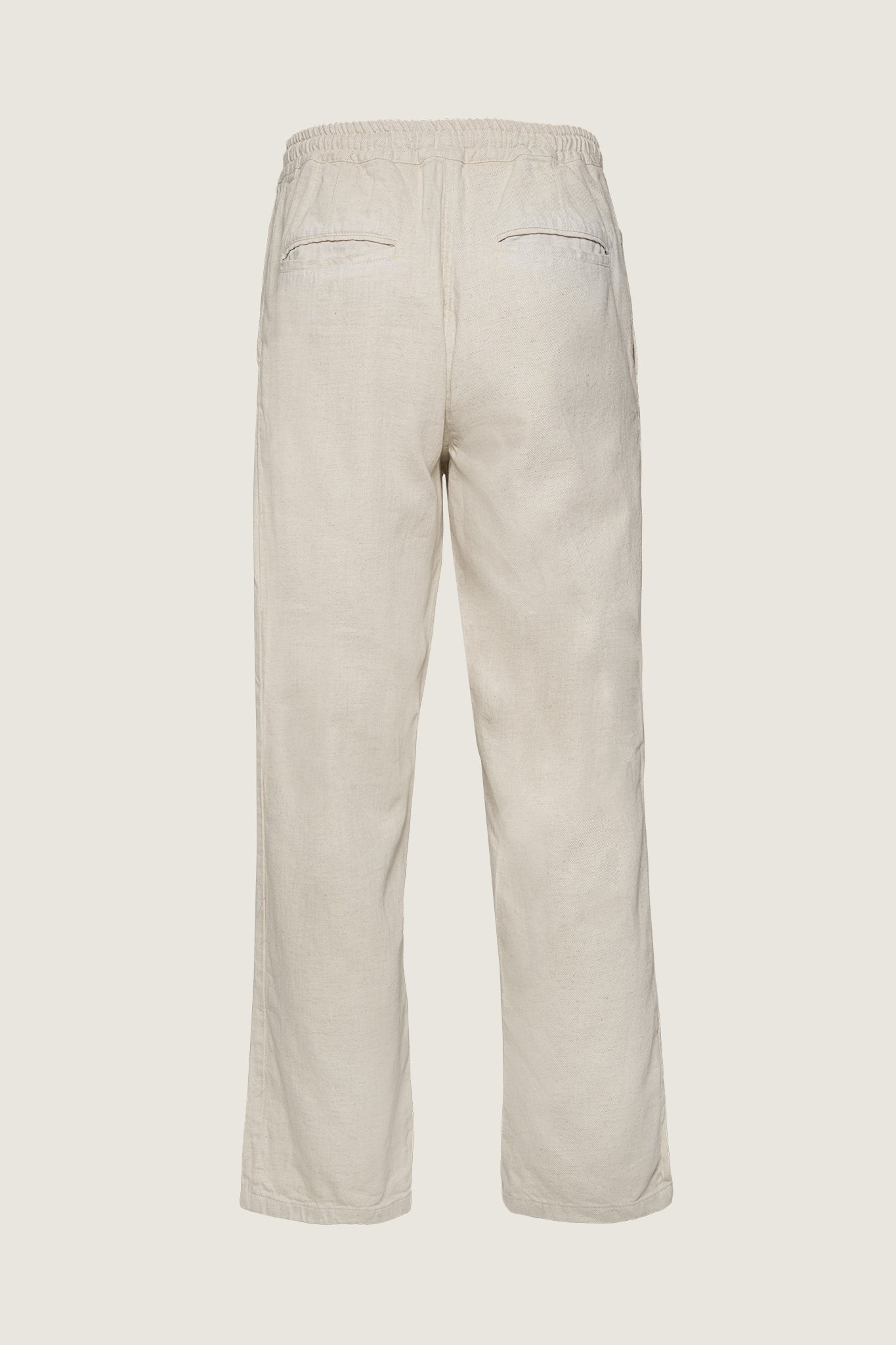 Este pantalón está hecho en una combinación de lino orgánico y tencel de origen latinoamericano que se caracteriza por su frescura. Su silueta es amplia y cuenta con cintura elástica y cordón ajustable, bolsillos de caja en la parte posterior y bolsillos laterales.